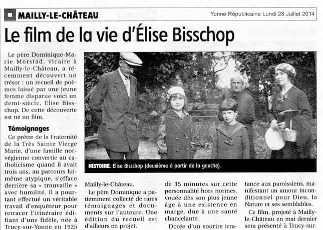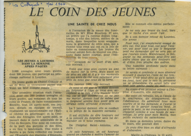 June 2010, a younger friend, Marcelle, having learned of the interest in Élise, brought the article from Châtel-Censoir to the presbytery; she had treasured it.