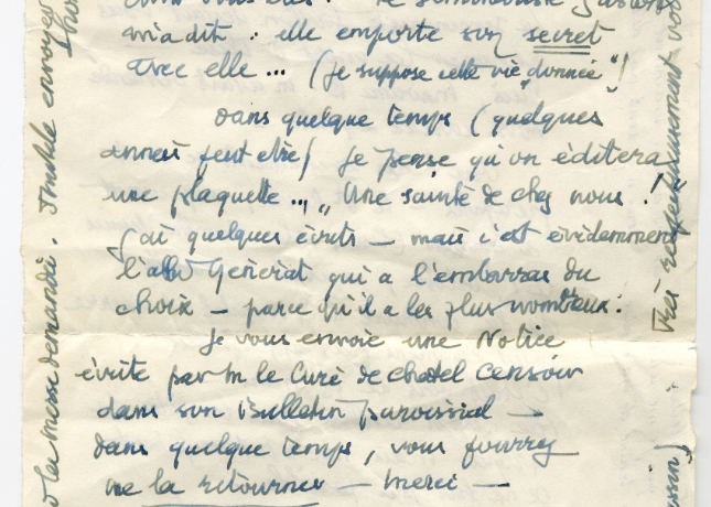 Élise begins an important correspondence with Father André Générat. She gives him news and asks him for advice on her spiritual life.