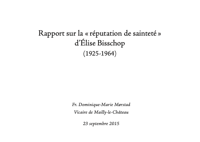 The bishop requests a second report, this time on “Elise’s reputation for holiness.”
