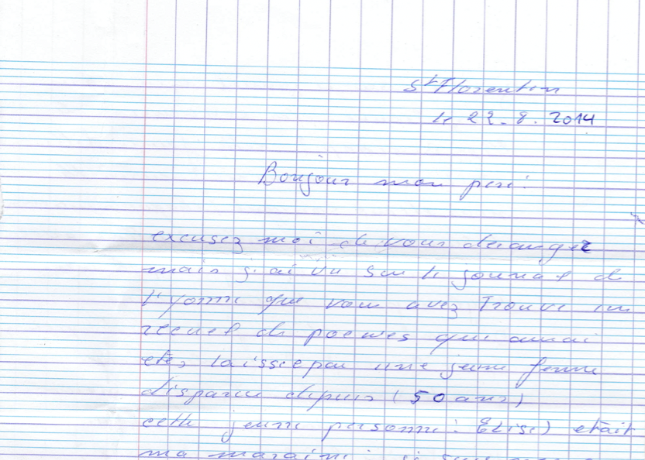 “You must read the poems; it is important ! Élise was a sainte; I knew her.”